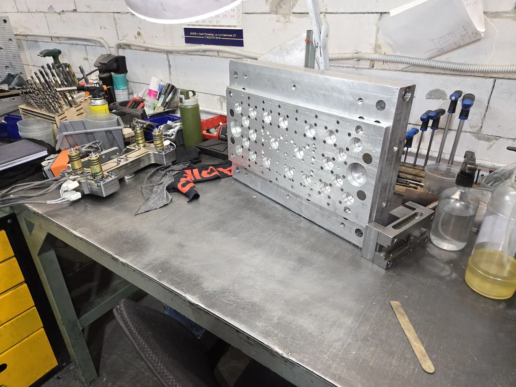 Все изготовленные компоненты — матрицы, пуансоны, литниковые системы, система охлаждения — собираются в единый, сложный механизм. Сборка подобна работе часовщика: каждый элемент должен встать на своё место, обеспечивая идеальную соосность и работоспособность.